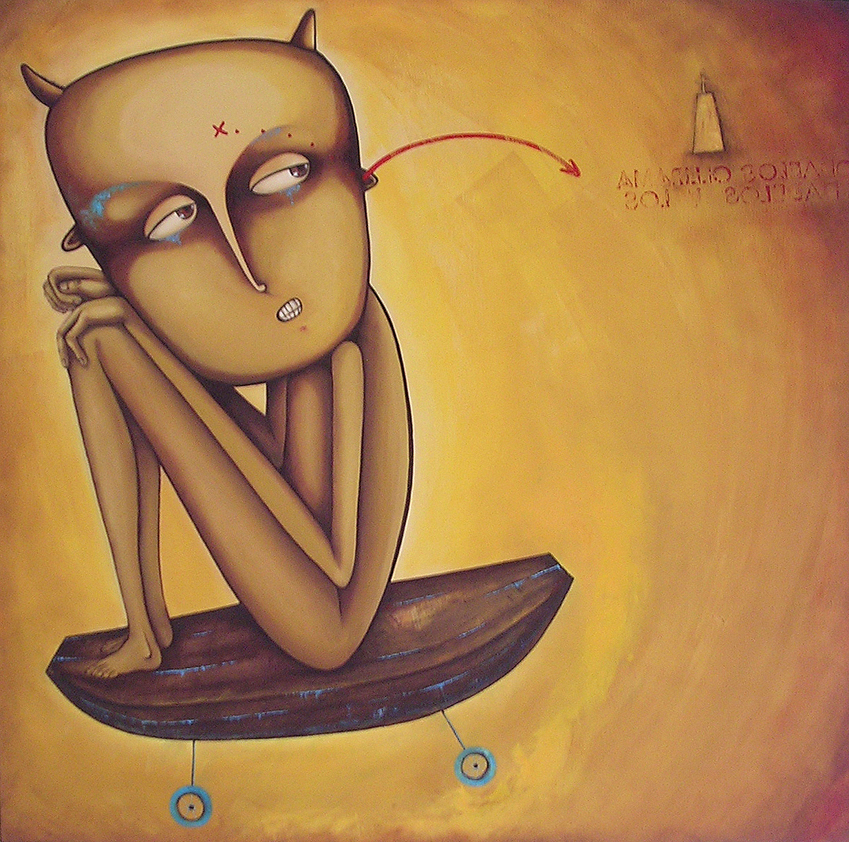 En mi mundo los objetos dejan de ser lo que parecen y dan vida a nuevos significados, ésta vez los pájaros se han apoderado de la escena; ligeros y pesados a la vez, con sus alas abiertas y una rueda que parece más, una promesa infinita de algún día poder volar. Van simulando un vuelo de alegría y libertad. Bailan constantemente al compás de melodías imaginarias y siempre sucumben al amor.